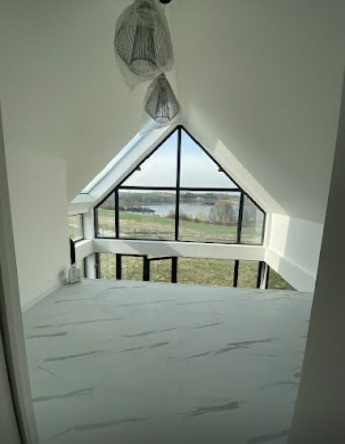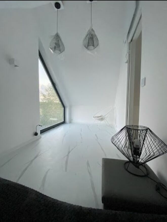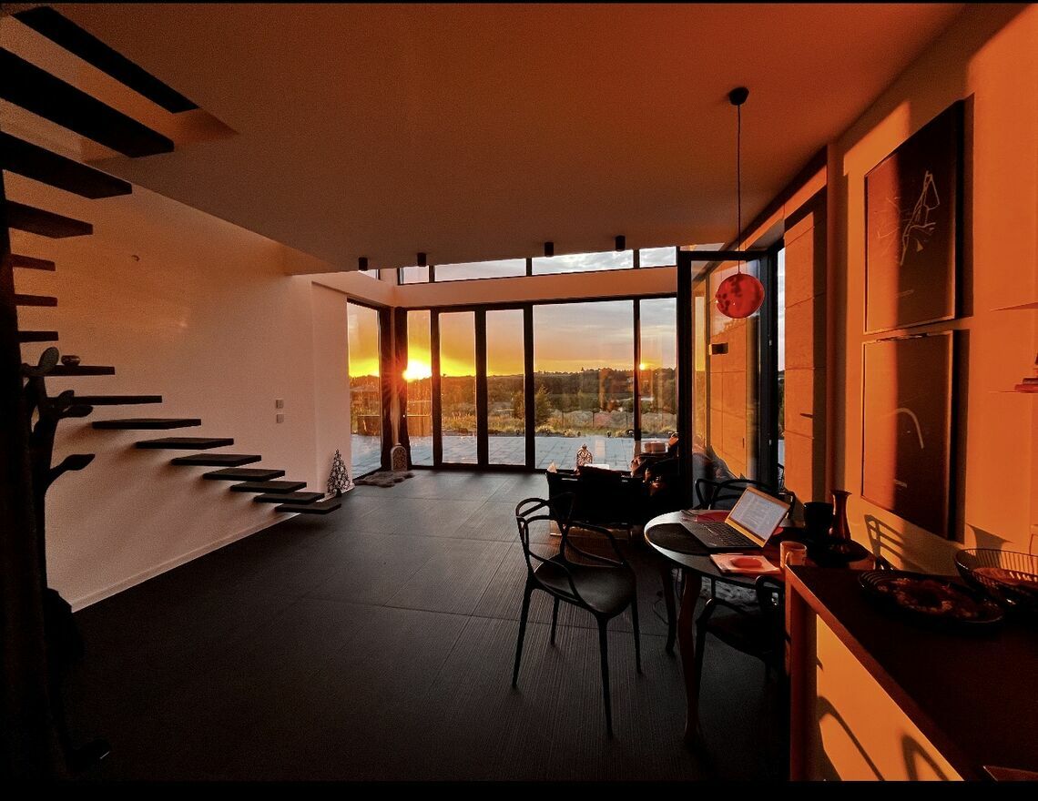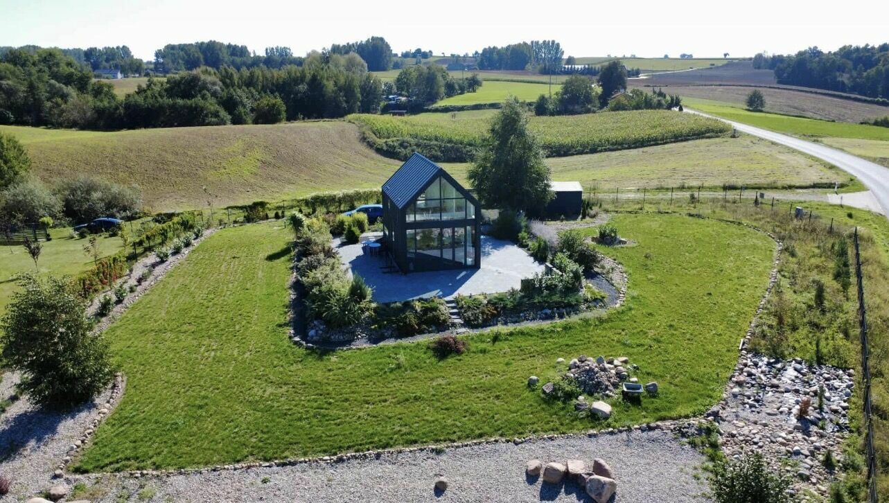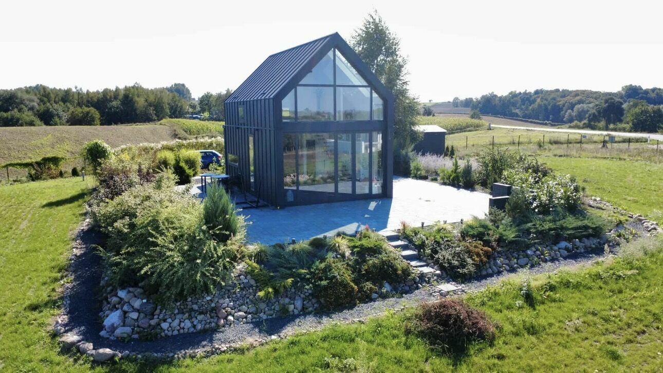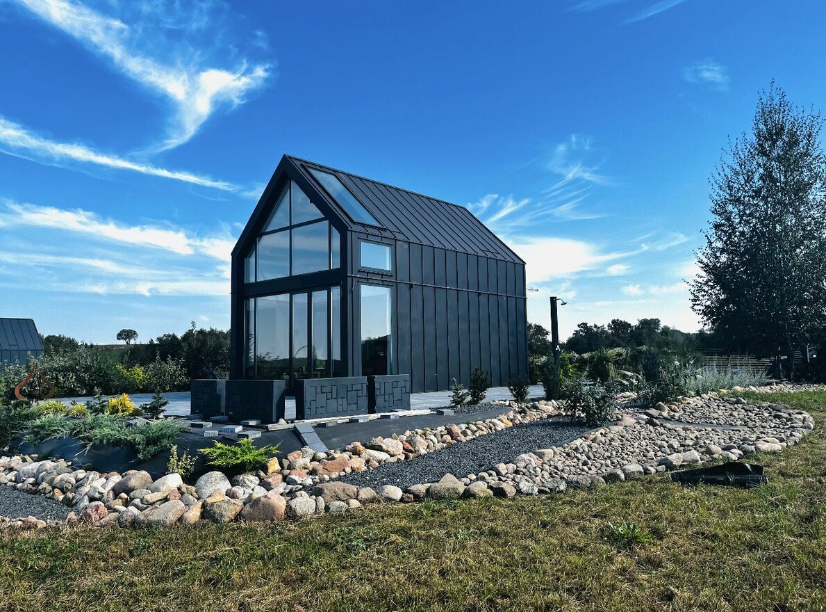 Pan Domek to autorski projekt malego domku okolo 55 m, latwego do ogrzania, tzw bezobslugowego a jednoczesnie okno-panoramicznego tak by moc czerpac radosc ze slonca i przyrody wokol. Dom o konstrukcji stalowej, ocieplonej plyta warstwowa 16 mm ( odpowiednik cieplny okolo 80 cm styropianu) z funkcjonalna przestrzenia nastawiona na optymalny rozklad pomieszczen. Calosc to parter z kuchnia i duzym salonem wraz z kuchnia,lazienka, przedsionek (ok 6 m2) ktory pelni funkcje magazynu i wiatrolapu. Pietro to 2 sypialnie. Elementem ozdobno funkcjonalnym sa schody plywajace, ktore pelnia rowniez funkcje ozdobna. Domek wybudowany w 2022 roku.